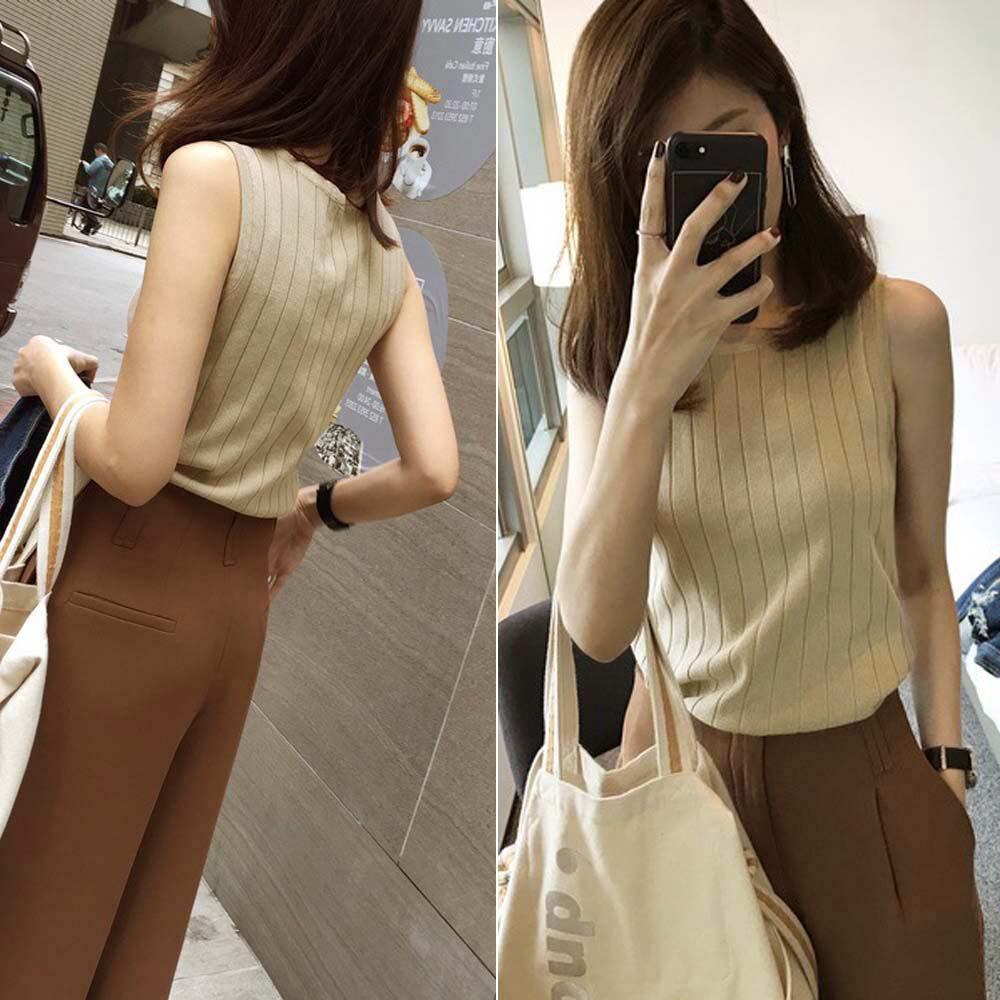 レディース サマーニット カジュアル ショート丈 ニットベスト 春夏秋 ノースリーブニットカットソー 韓国ファッション