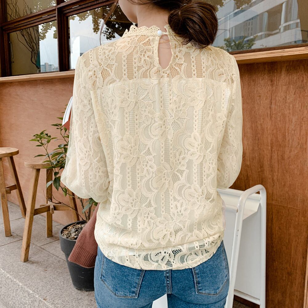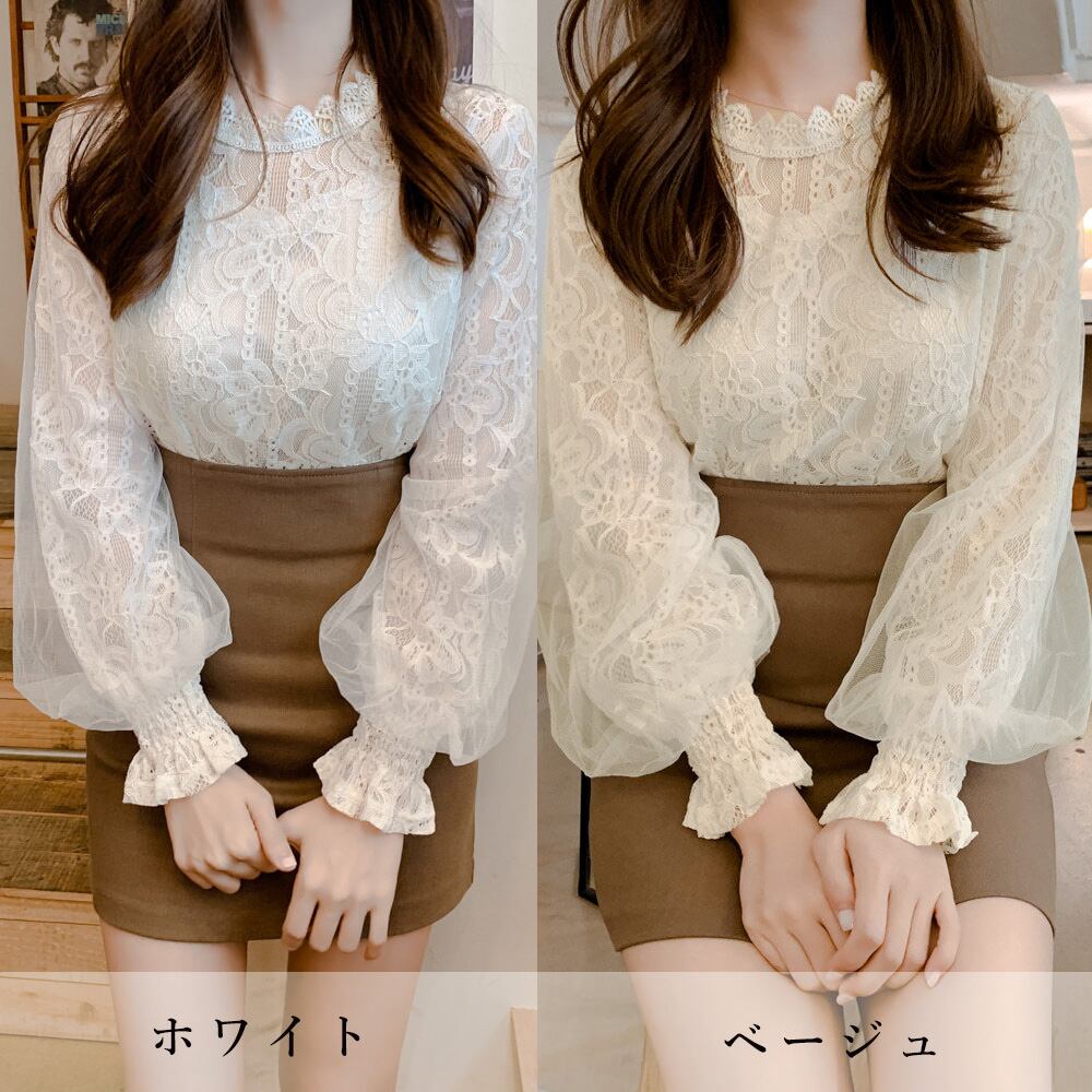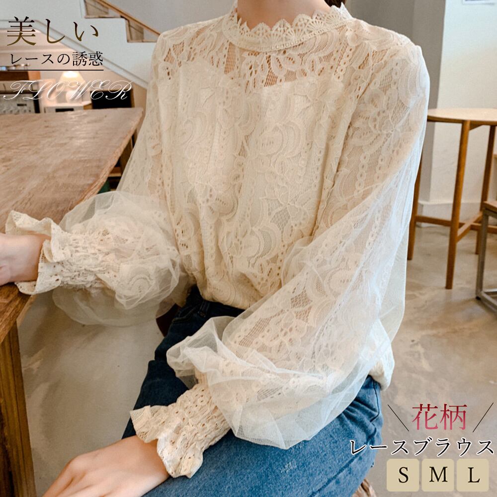 刺しゅうレース ブラウス レディース ランタンスリーブ 花柄 シャツ 長袖