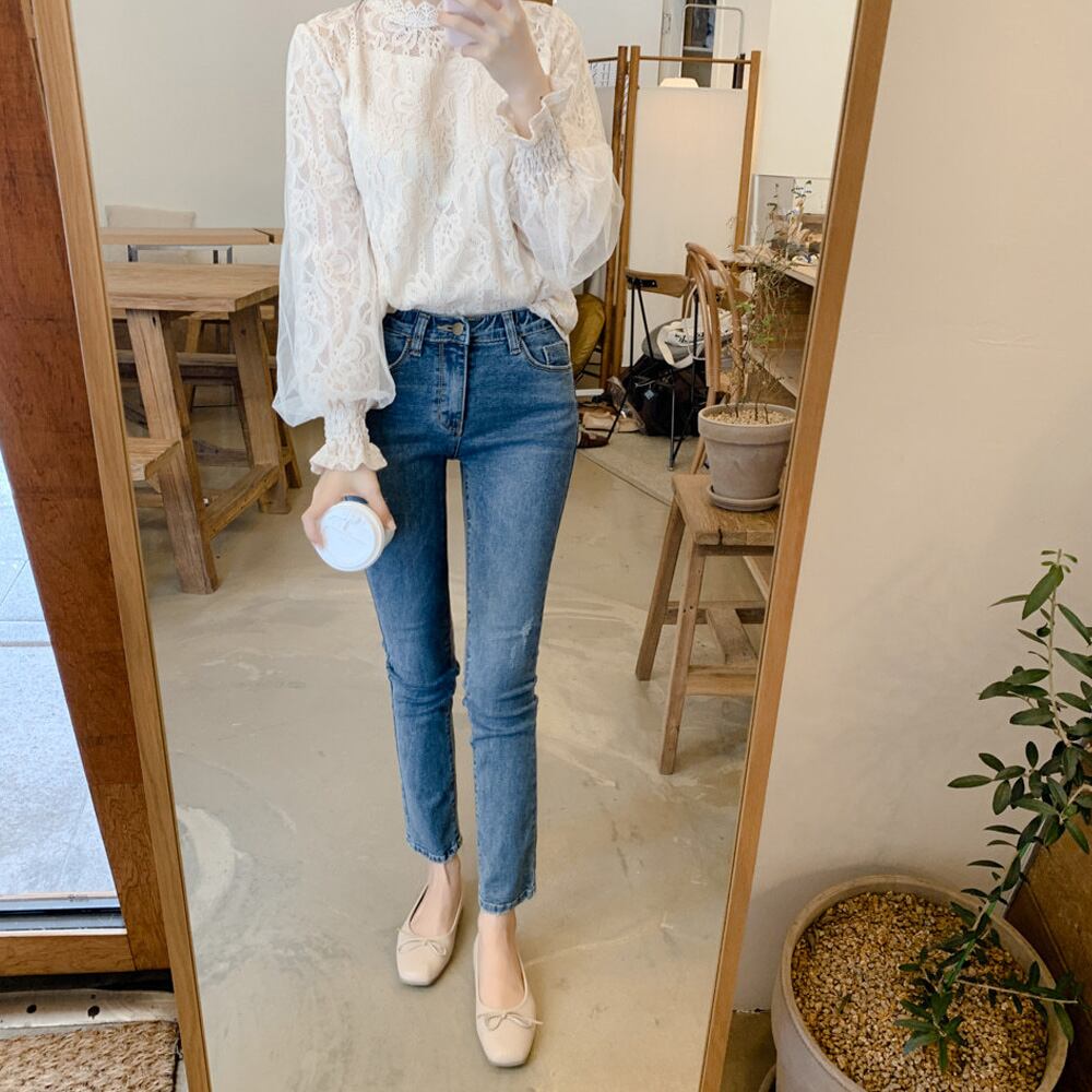 繊細な刺しゅうレースを施したブラウスです
