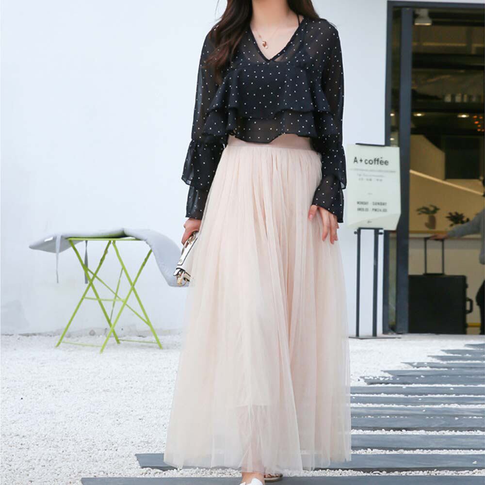 チュールスカート ロング マキシスカート ウエストゴム フレアスカート 春夏