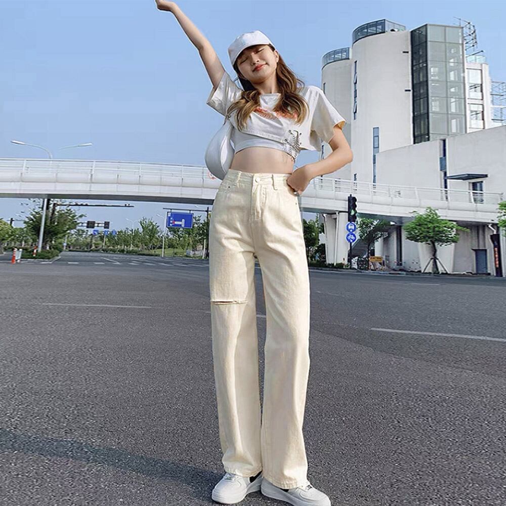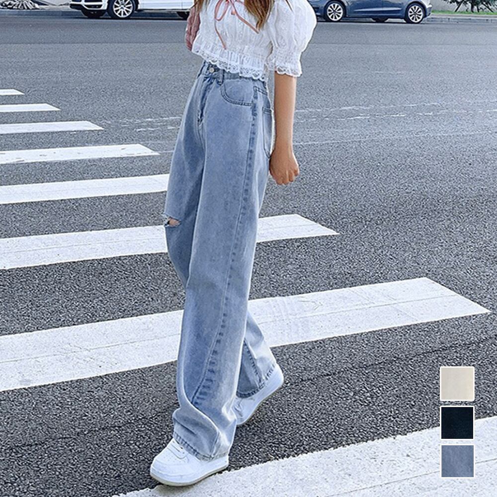 デニムストレートパンツ ダメージジーンス