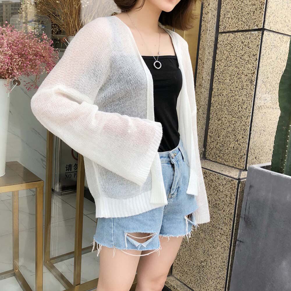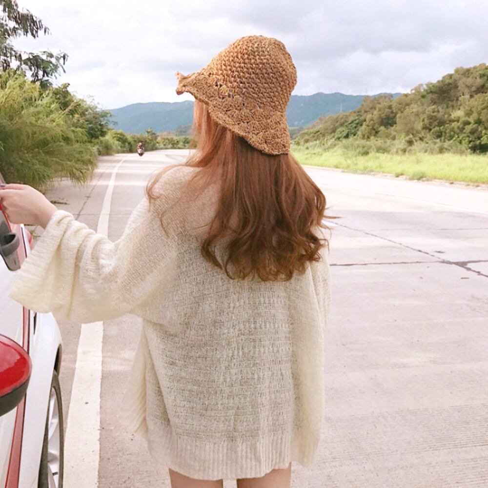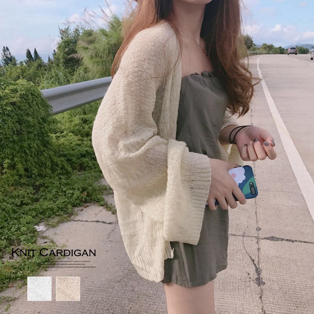 トッパーカーデ レディース きれいめ ボリューム袖 ふんわり ゆったり ショート サマーニット 韓国ファッション