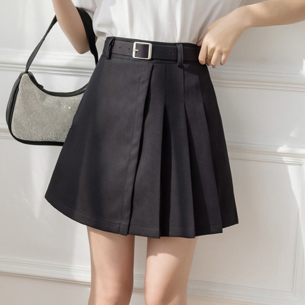 女性らしいシルエットにしてくれるベルト付きミニプリーツスカート