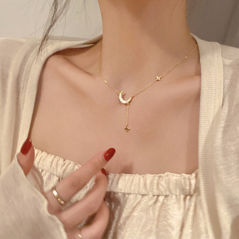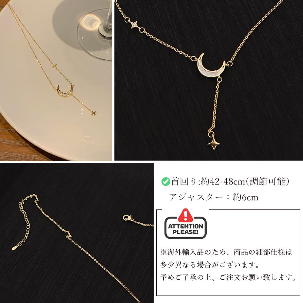 細め チェーンネックレス 星 スター ムーン 月モチーフ アクセサリー ゴールド 可愛い女性 きれいめ 首飾りおしゃれ