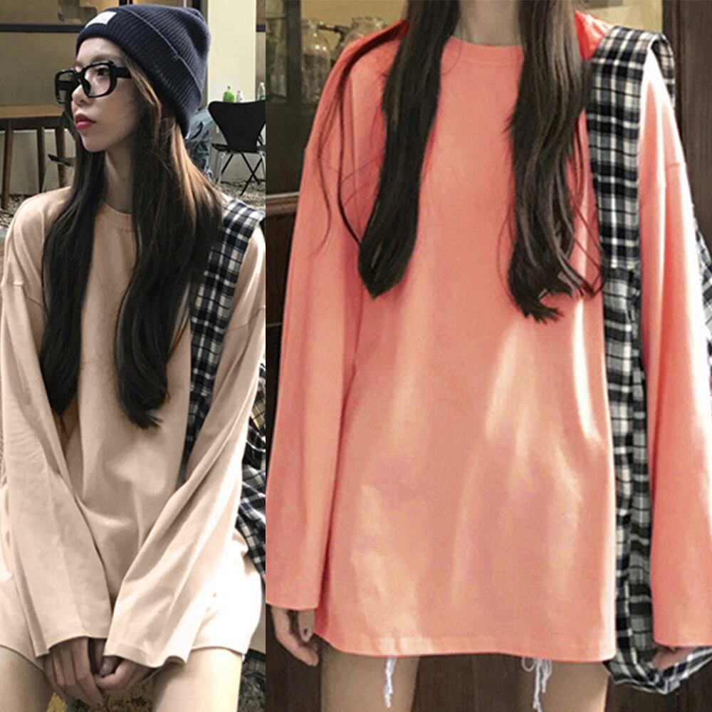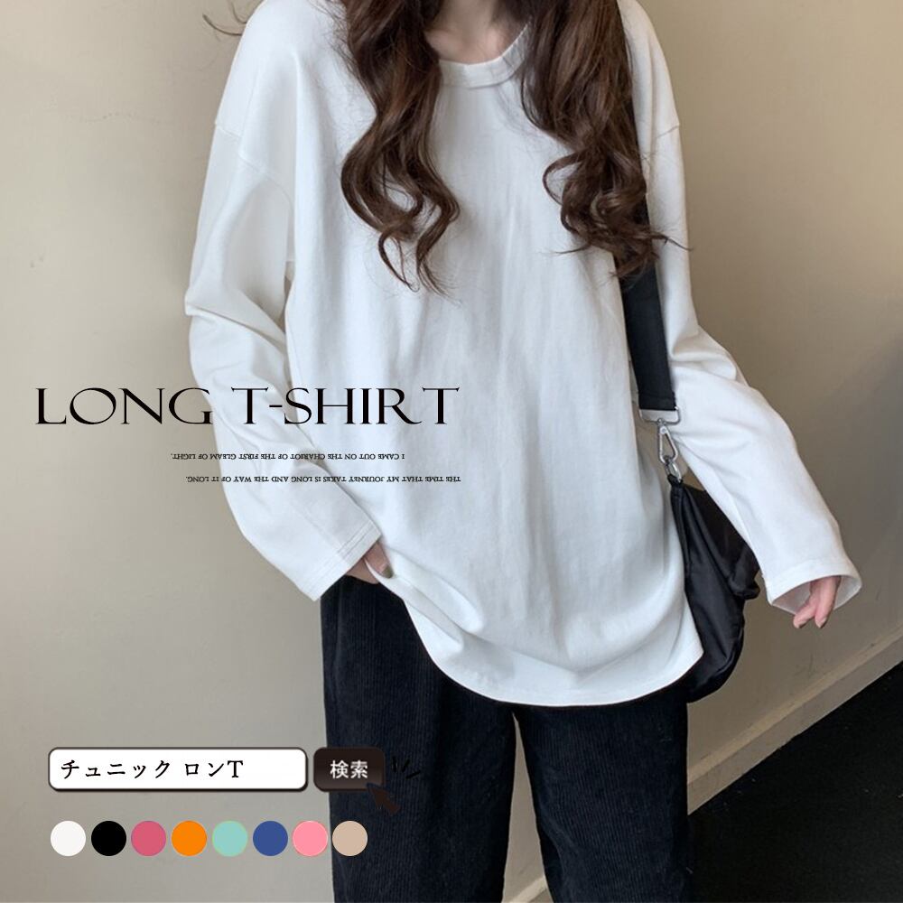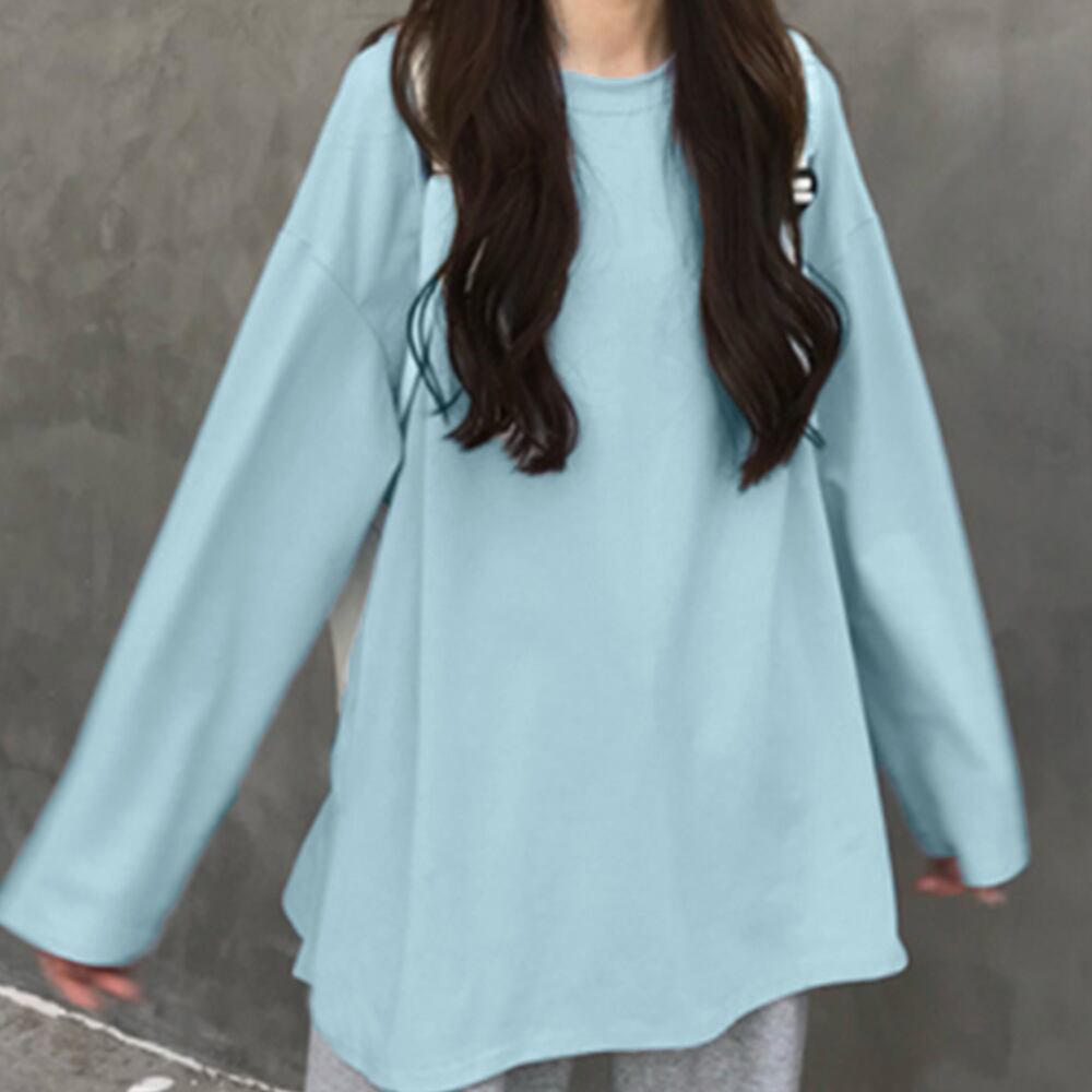 ゆったり 着やせ 長袖プルオーバー 韓国 ファッション おしゃれ カットソー 無地 Tシャツ体型カバー カジュアルトップス ラウンドネック