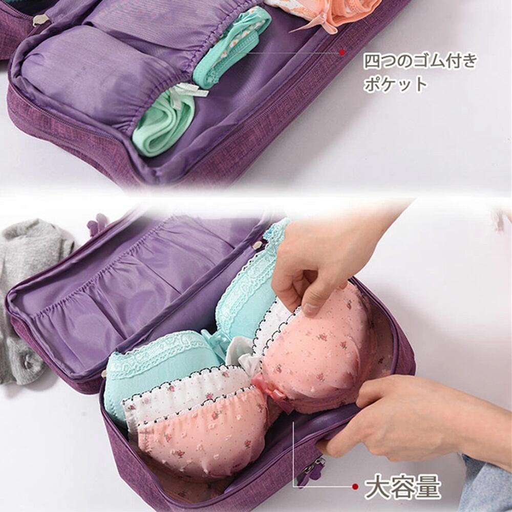ブラジャーショーツ収納 トラベルポーチ 収納ボックス 持ち運び 大容量 仕切り 便利グッズ コンパクトインナー収納ケース
