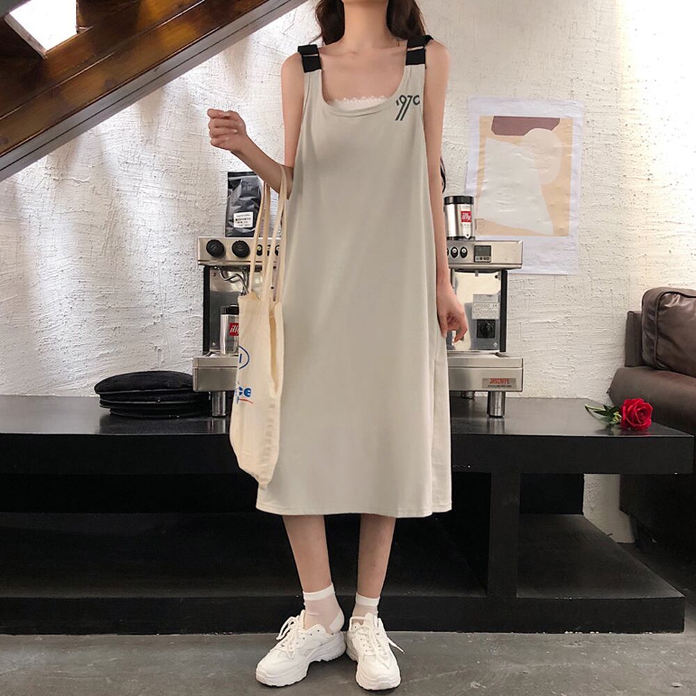 膝下丈ジャンスカ 重ね着ワンピース 体型カバーワンピ