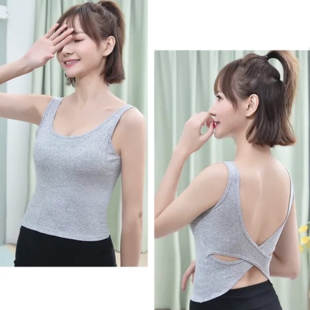 バッククロス タンクトップ レディース パッド付き ブラトップ 背中開き