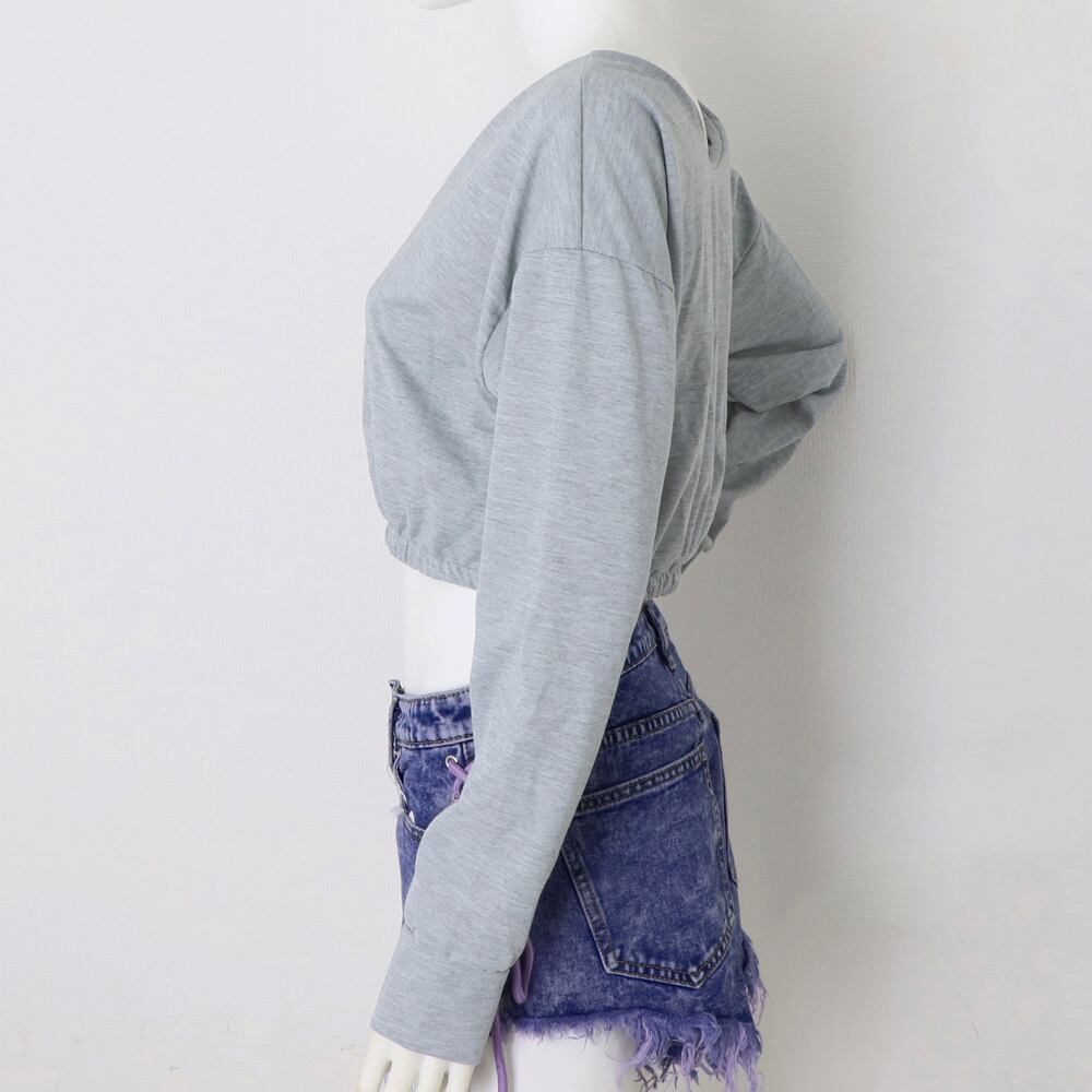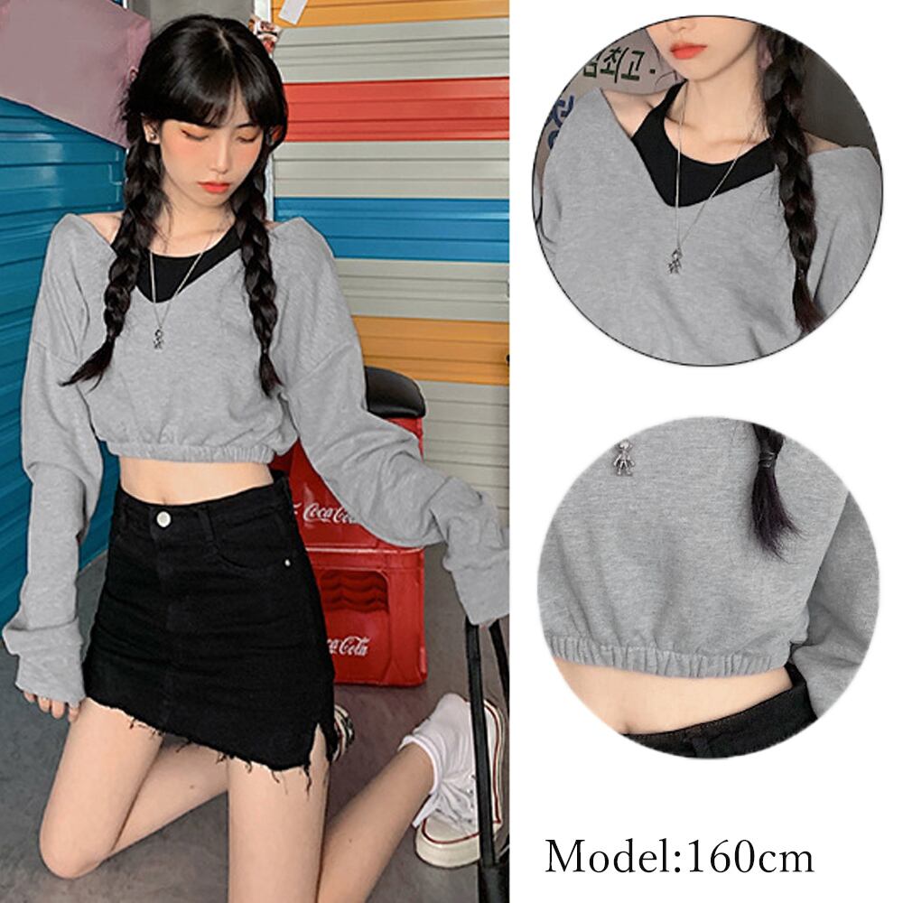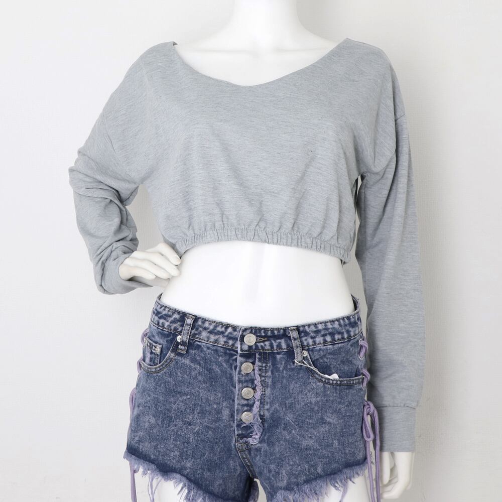 ショート丈トップス へそ出し カットソー クロップド丈 セクシー 長袖