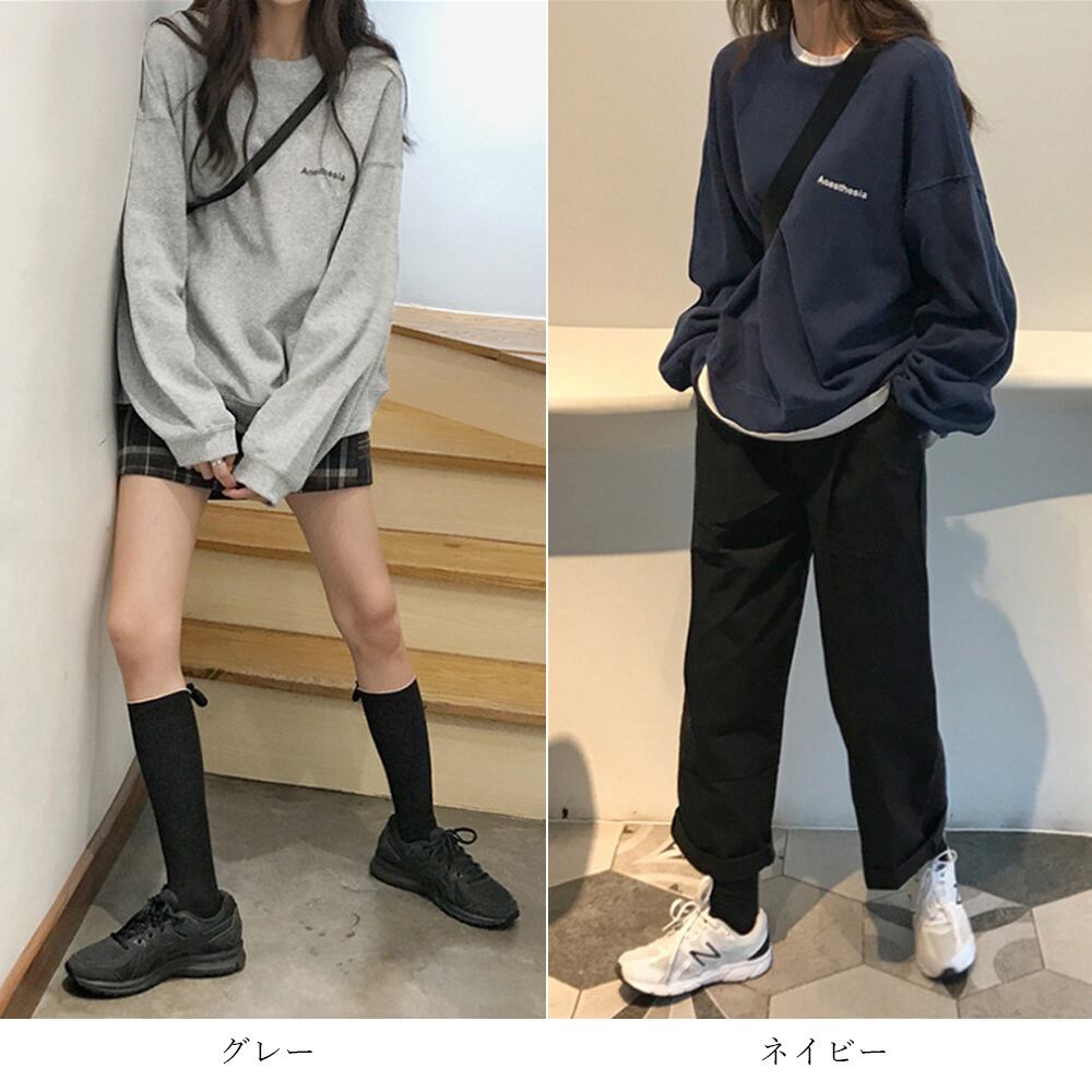 韓国ファッション レディース トップス オーバーサイズ クルーネック プルオーバー ストリート 春秋 カジュアル