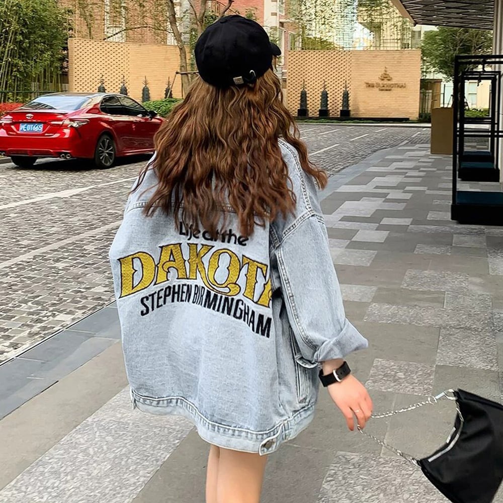 刺しゅう デニムコート 体型カバー 春秋冬 アウター ゆったり 英字プリント Gジャン オシャレ カジュアルトップス