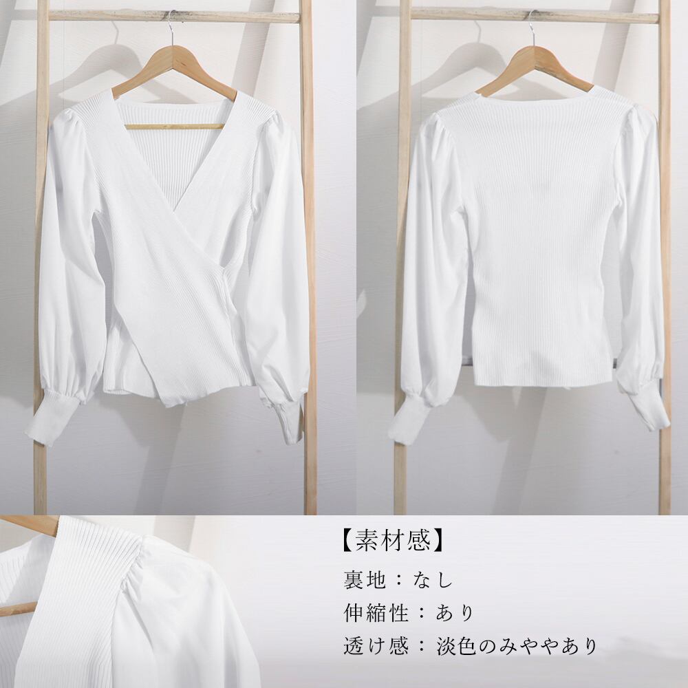 レディース カシュクール ニットセーター パフスリーブ ニットソー Vネック ニットウェア
