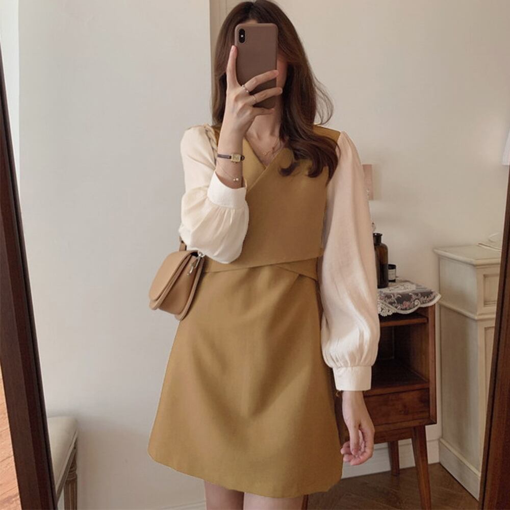 春 重ね着風ワンピ オフィスカジュアル ワンピース 韓国