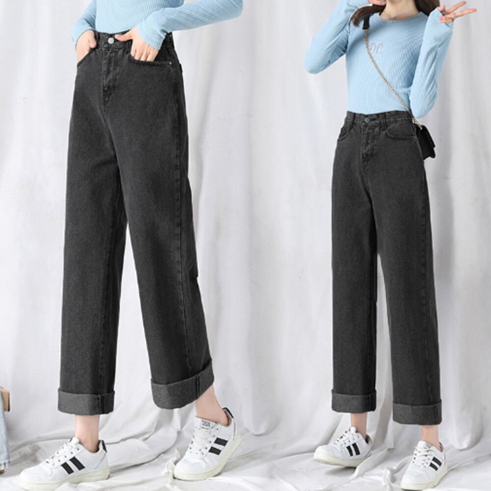 ロングパンツ レディース ストレートパンツ カジュアル ズボン 韓国風 ジーンズ ゆったり ボトムス 春夏 ロールアップ