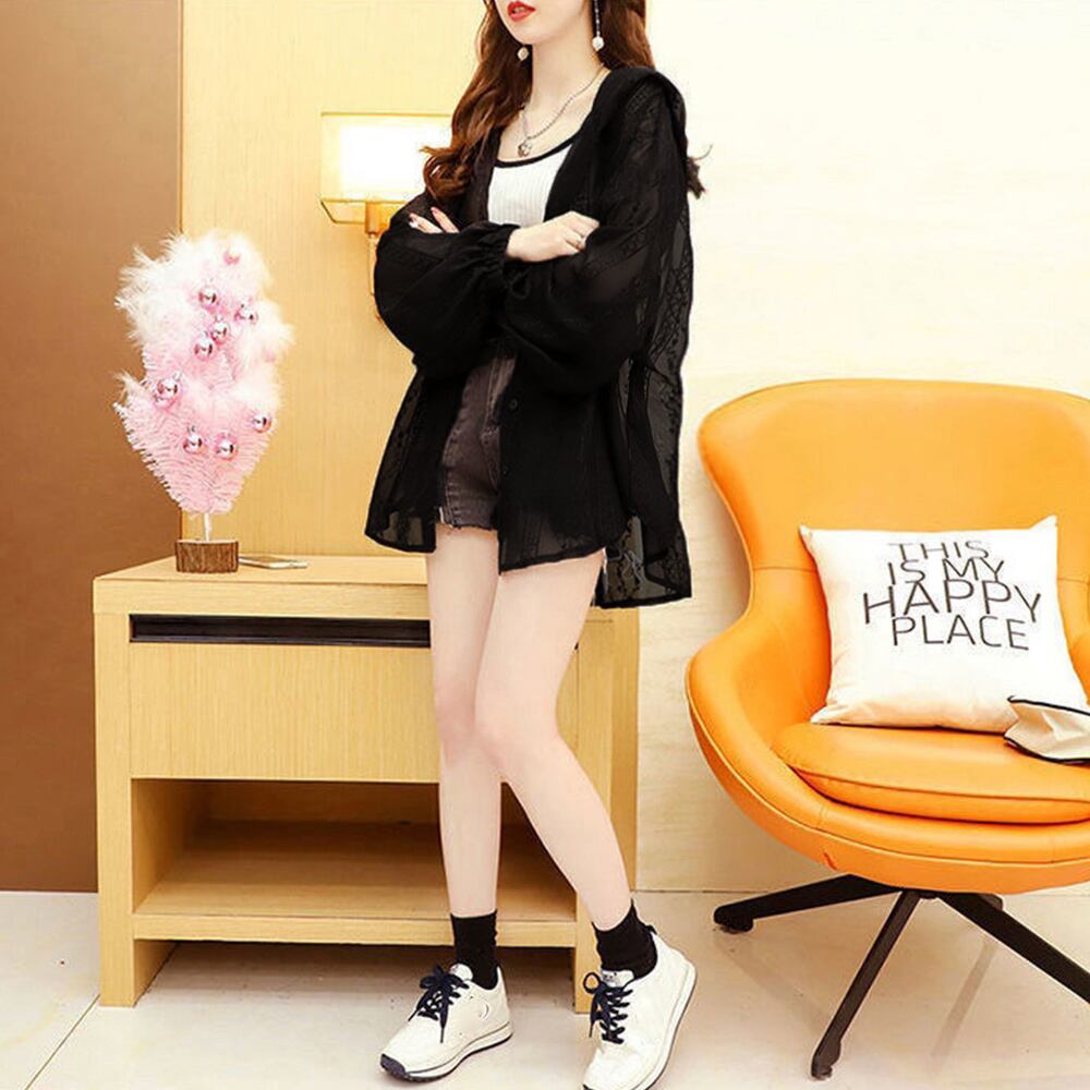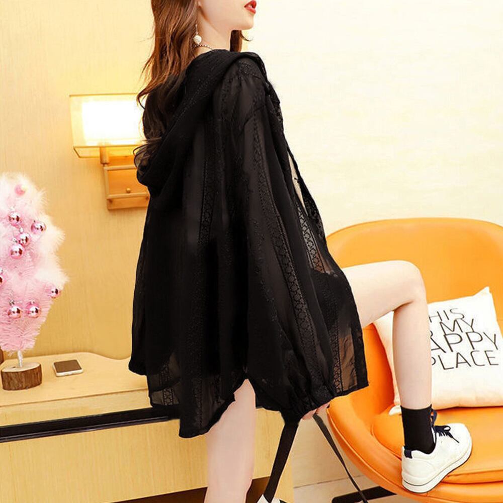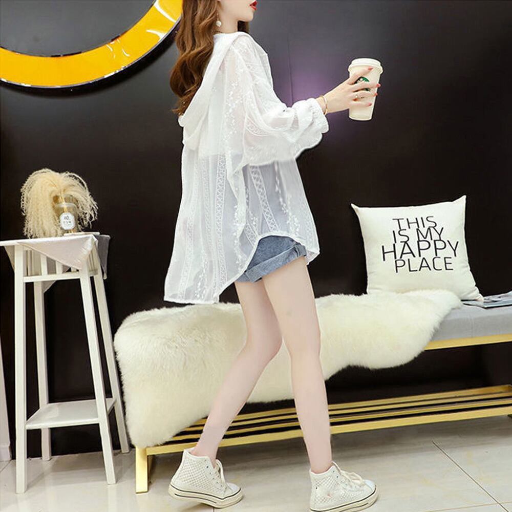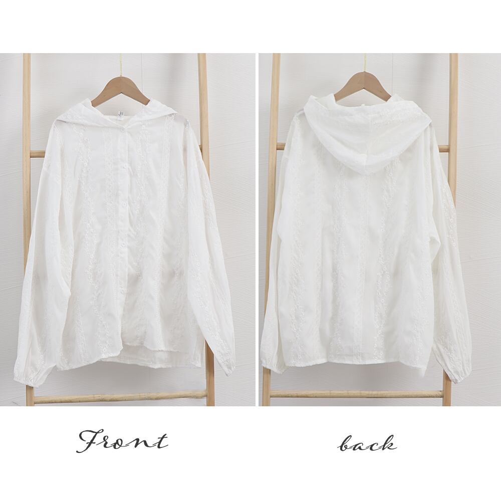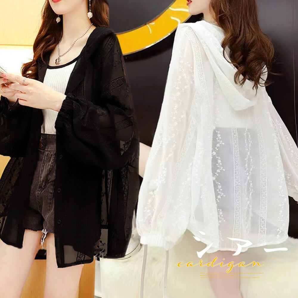 UVケア サマーパーカーカーデ 薄手 透け感 長袖トップス 夏アウター 体型カバー 羽織り カジュアル シアーシャツ白黒